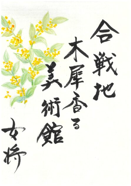 短いけど風情あるトンネル抜けてまだ上り坂どす。そうや!毎日ニュースで熊の事聞いてるさかい、不安を感じてしまうのやわと気が付いたけれど、熊が出てきゃはらへんと言う確証もないし・・・といろいろ思いながら到着どす。美術館と言うより瀟洒な洋館。金木犀が強く香りを放ち、秋真っただ中どす。ここまで来たら、急にお人さんいっぱいやはるやん!よかったわぁと、急にテンションも上がって、お洒落な入口はドアノブを回して入ります。この重厚な扉で全く中の様子が分からない美術館。それもその筈、個人の別荘やったんどす。大阪の実業家で証券業や蘭の栽培もしたはった<加賀正太郎さん>が大正から昭和にかけて建築しゃはりました。この英国風山荘は5500坪の庭園の中にあって素晴らしおすけど、歴史的にはご本人が亡くなられた後、幾度かの転売の憂き目に遭わはります。全て潰してしもて大規模マンションの計画が浮上したりしますけど、地元の方々が保存運動をしゃはって京都府や大山崎町から要請を受けはったアサヒビールさんが行政と連携をしながら美術館にしゃはりました。そんなことも考えるとこの素晴らしい山荘を美術館として残してくれはったアサヒビールさんに感謝どす。今現在はサイバーテロに遭わはってほんまに大変どす。うっとこも(私共も)アサヒビールが一部分入荷出来しまへんけど、ほんまにテロとかややこしい事せんといてほしおす(欲しいです)。早い回復を心から祈るばかりどす。